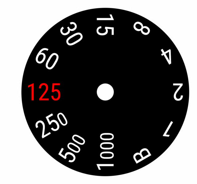 La quantité de lumière qui atteint le film ou le capteur est multipliée ou divisée deux dès qu’on passe d’une valeur à l’autre sur cette échelle. Par exemple, un temps d’exposition de 1/250e de seconde est deux fois plus court qu’un temps d’exposition de 1/125e de seconde, quatre fois plus court (environ) qu’un temps de pose de 1/60e de seconde, etc. Notez que, par commodité, certaines valeurs sont arrondies (par exemple, 1/60e de seconde n’est pas exactement le double de 1/125e de seconde).